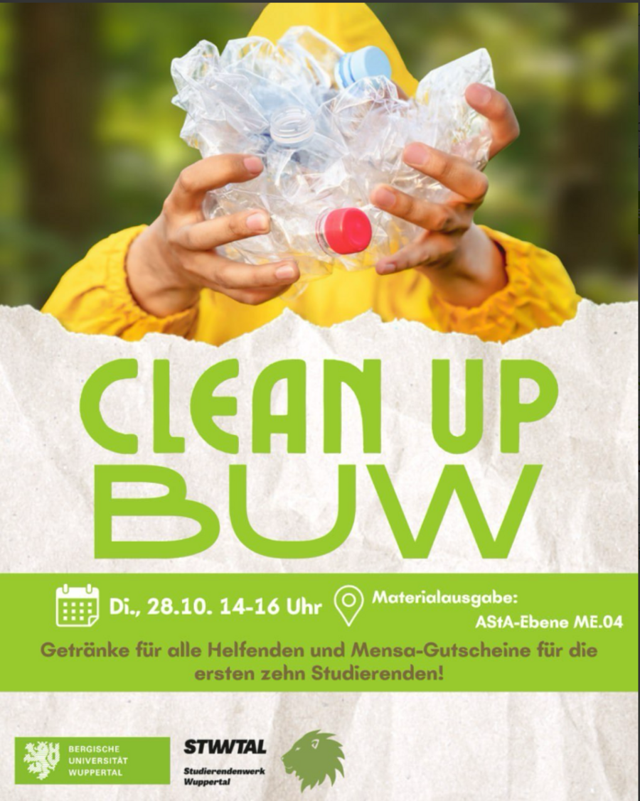 Am 28. Oktober geht der Campus CleanUp der Bergischen Universität in die nächste Runde. Von 14 bis 16 Uhr sind Studierende, Beschäftigte und Besucher*innen eingeladen, gemeinsam Müll auf dem Campus zu sammeln und damit ein sichtbares Zeichen für Nachhaltigkeit zu setzen.